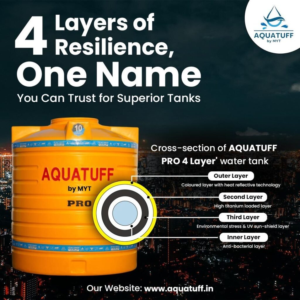 AQUATUFF by MYT delivers premium water tanks and garden pipes designed for durability, hygiene, and long-term reliability. Every product is crafted using 100% virgin, food-grade plastic and advanced multi-layer technology to keep your water safe and temperatures stable.